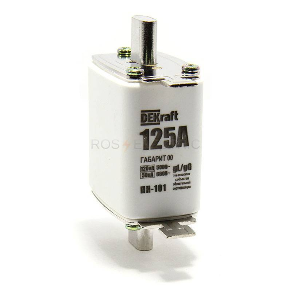 DEKraft ПН-101 - предохранители ножевые, используются в однофазных и трехфазных сетях переменного тока, напряжением до 660 В, частотой 50 Гц, применяются для защиты электроустановок и кабельных линий от перегрузки и короткого замыкания. Применение предохранителей позволяет быстро и надежно производить отключение электрических цепей, и тем самым исключать возможность подачи недопустимых перегрузок на защищаемое оборудование. Предохранители типа gG/gL обладают высокой отключающей способностью и стабильностью характеристик. Применение предохранителей типа gG/gL позволяет обеспечивать селективность защиты при КЗ. Предохранители ножевые реагируют на внезапное повышение температуры, следовательно обладают хорошей способностью к отсечке тока.