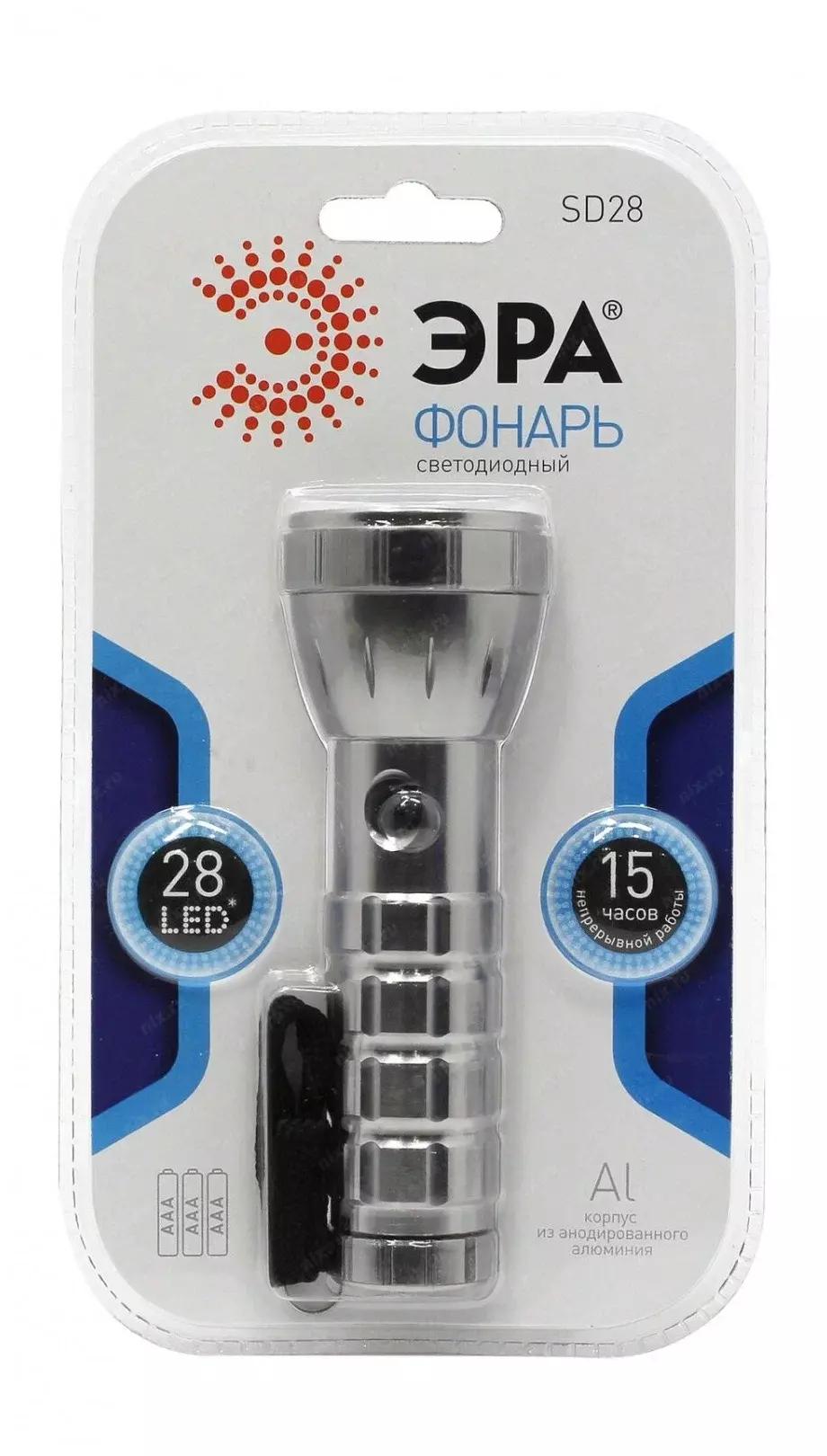 Короткое наименование товара для клиента: | Фонарь ЭРА SD28 28xLED, алюминий, 3хААА |