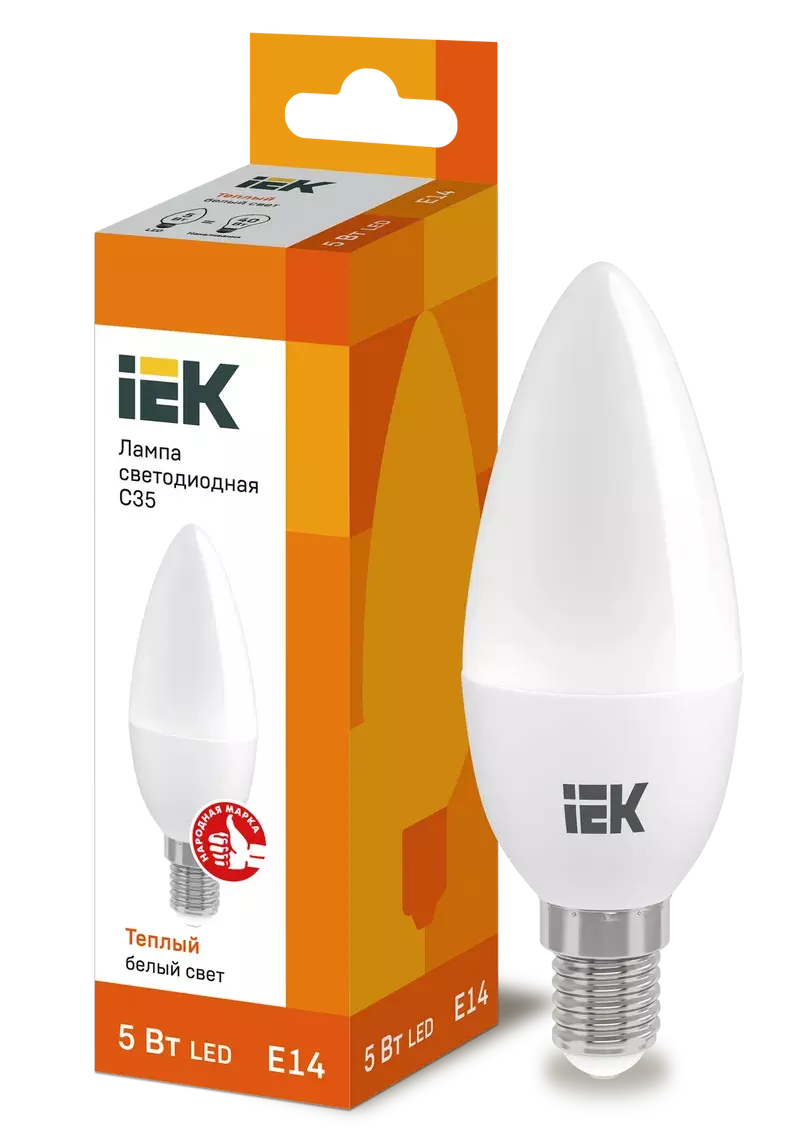 Лампа светодиодная ECO C35 свеча 5Вт 230В 3000К Е14 IEK LLE-C35-5-230-30-E14